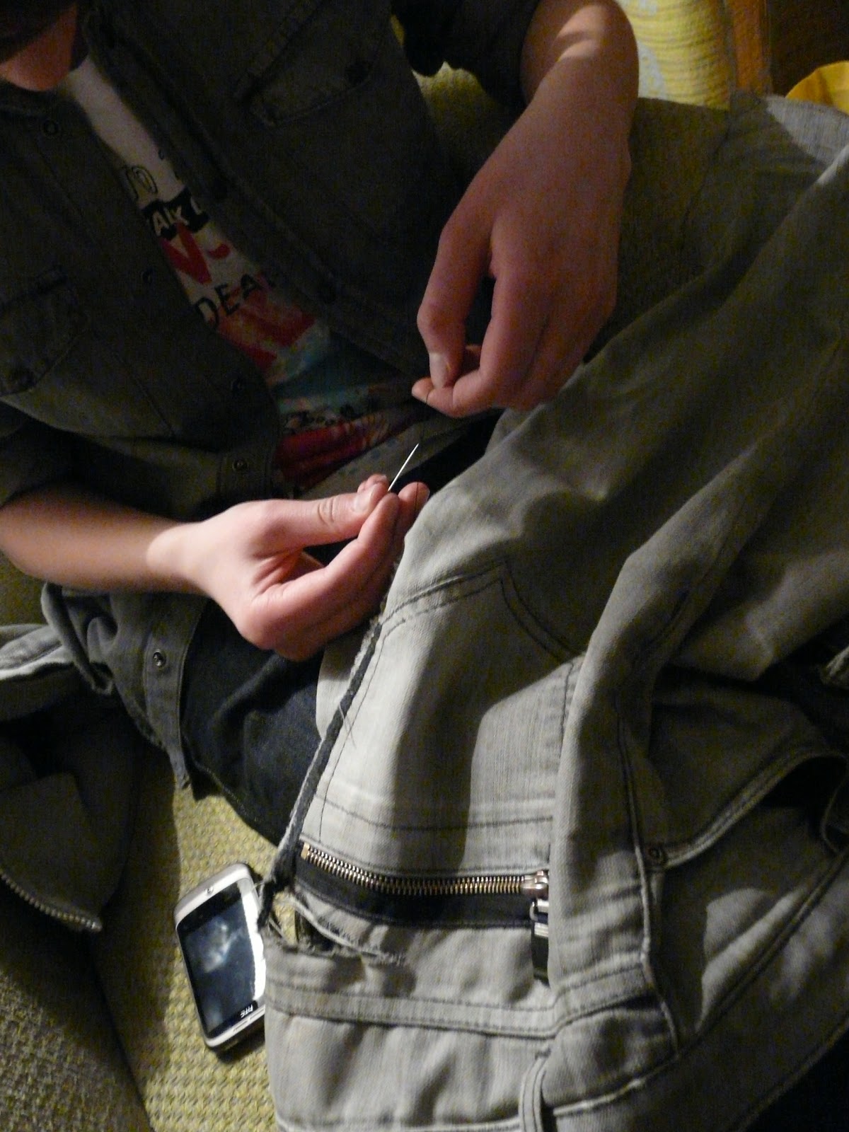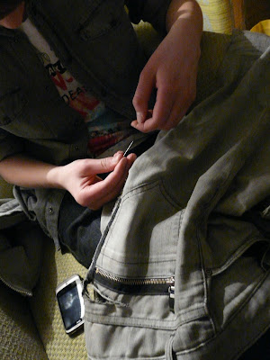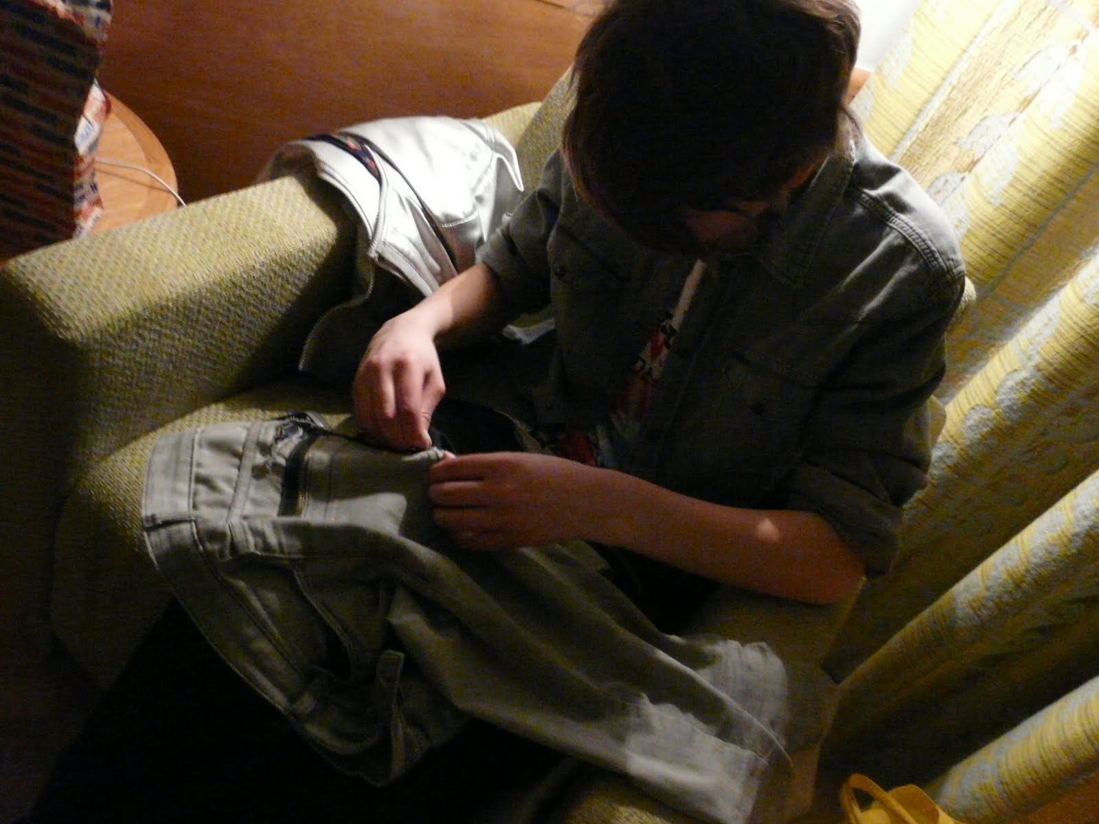 Ystäväni ompeli ne mm. Los Angelesissa ja Pietarissa=D Kun en itse osaa XDD Suomessa mummo ja äiti ompeli ne kans kerran:D Onneksi Antza on hyvä ompelee, se teki farkkuihin pikakorjauksen ;))) Et ne kesti sit sen illan, mut ne on taas hajalla :/