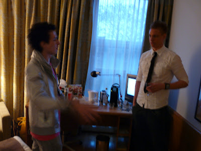 Tavattiin siin iha tsägäl jotain Miikan managerituttuja, lähdimme hotelliimme "jatkoille", jauhoimme siel jotain shittii ja mentiinn nukkuu! :D Oli mukava päivä, tällainen piriste tähän mun opiskeluarkeen;D Joka ei helpota vielä ainakin kolmeen viikkoon!! :p