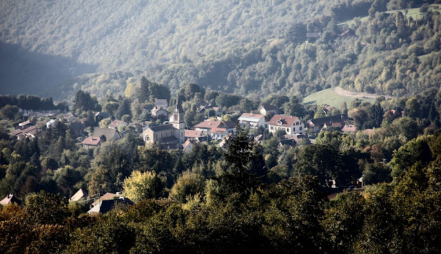 | Vuoristolta näkee sumuinen pilkahdus Grenoblesta, joka on siis taustalla |