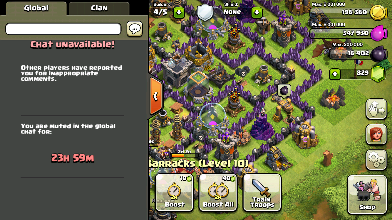 Sen sijaan löysin siinä reilu 1,5v sitten pelini - Clash of Clans eli COC eli Cläshäri suomeksi! Aivan mahtava ja kutkuttava peli! Siinä jos ei esim. ehdi pelaa vaikka kuukauteen kovinkaan aktiivisesti, se ei maailmaa kaada! Lähinnä Clanista mitä todennäköisemmin lentää silloin ulos. ;p