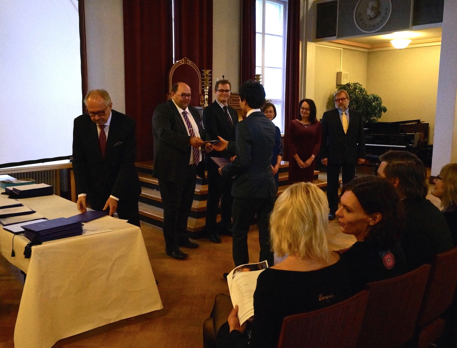 Marraskuun puolessavälissä piti palauttaa jo suhteellisen valmis lopputyöversio ja kurssienkin piti olla pulkassa jo joulukuun alussa, sillä vamistumispäivä oli 19.12. Eihän kukaan valmistu niin, että palauttaa kaiken vasta tuolloin valmistumispäivänä! Muodollisuusviidakko oli sekin siis tiukka ja eteni omassa aikataulussaan: Kaikesta oli huolehdittava täysin itse ja noudatettava täsmällisesti deadlineja. Pidin käytännössä päivittäin marras-joulukuun aikana yhteyttä niin lopputyöohjaajiini, tutkintopäällikköihin kuin muihinkin koulumaailmanihmisiin, kuten opintoasianvastaaviin.