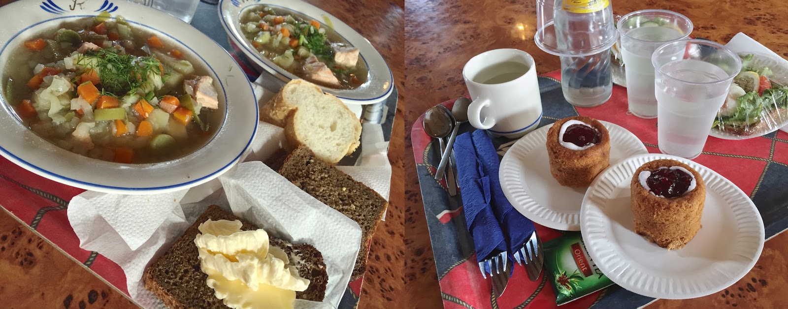 | Lounas ja päivällinen. Tuoreista raaka-aineista valmistettu kalakeitto sekä todella maukkaat Runebergin tortut. Mielettömän hyvää! |