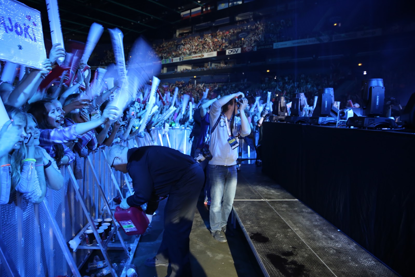 | Se tunne kun olet esiintymislavan ja kirkuvien teinin välissä, onneksi tuotantoyhtiön edustaja tarjosi tuossa korvatulppia. :---D |