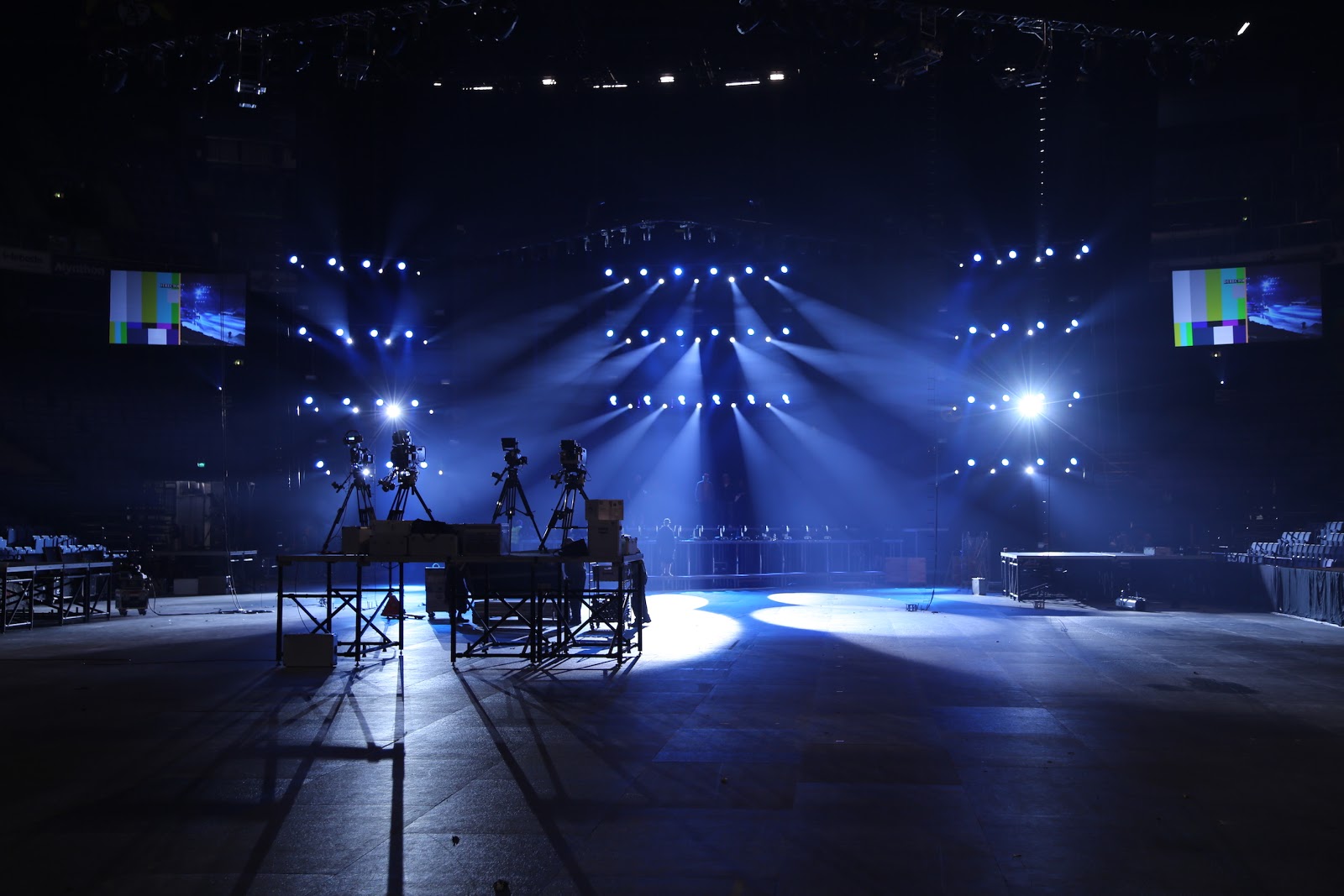 | Tekniikan- ja tuotannon väki oli saanut valtavasti aikaiseksi kahden päivän aikana. Kulissien takaa vähän ennen h-hetkeä! @ Elämä Lapselle -konsertti, Helsinki. |