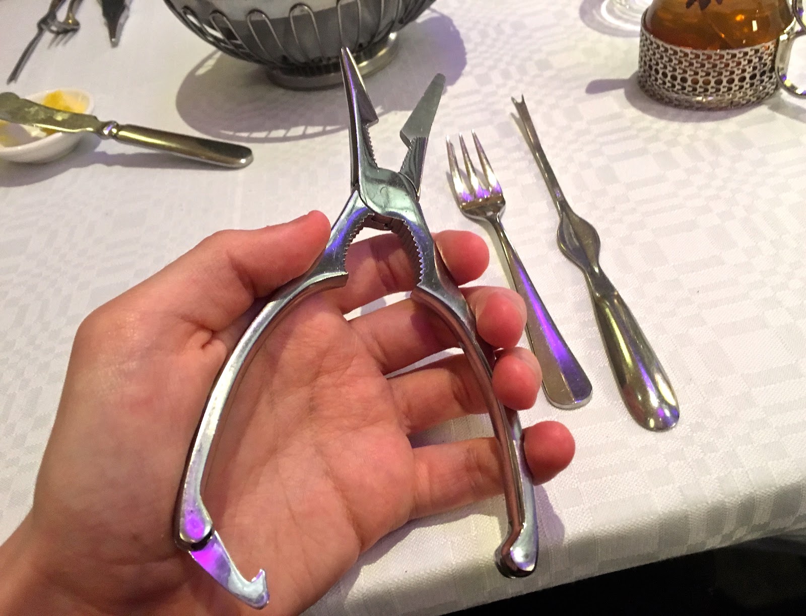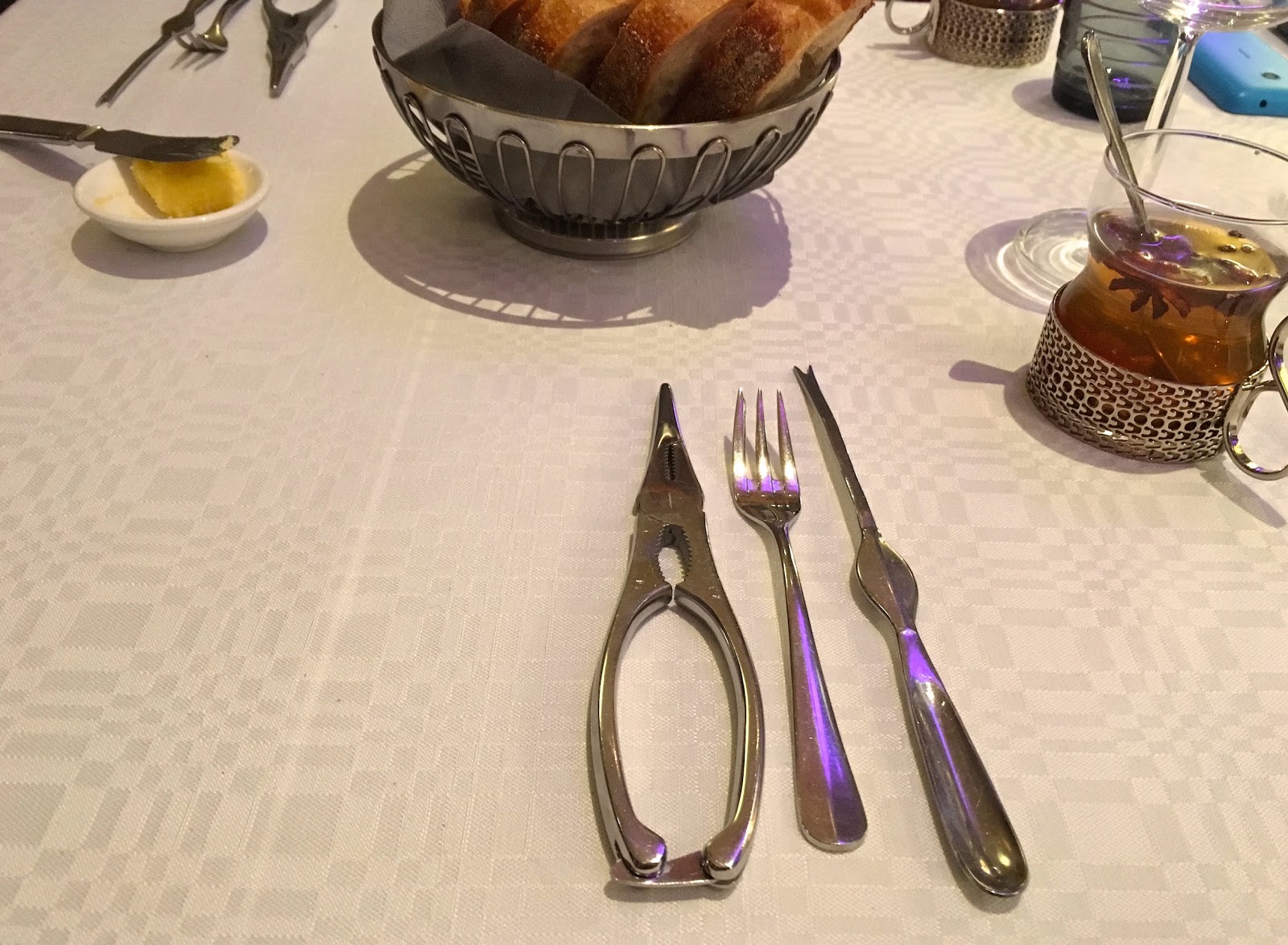 | Hummeri-illallisen työvälineitä... @ Ravintola Salutorget, Helsinki. |