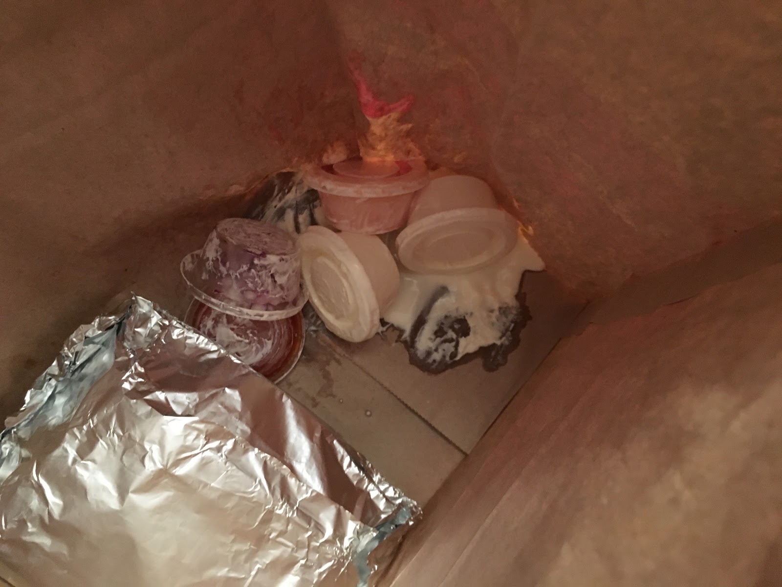 | Tässä otetta Foodoran kuljetuspalvelusta. En ole koskaan ennen saanut tällaista ruokatoimitusta... |