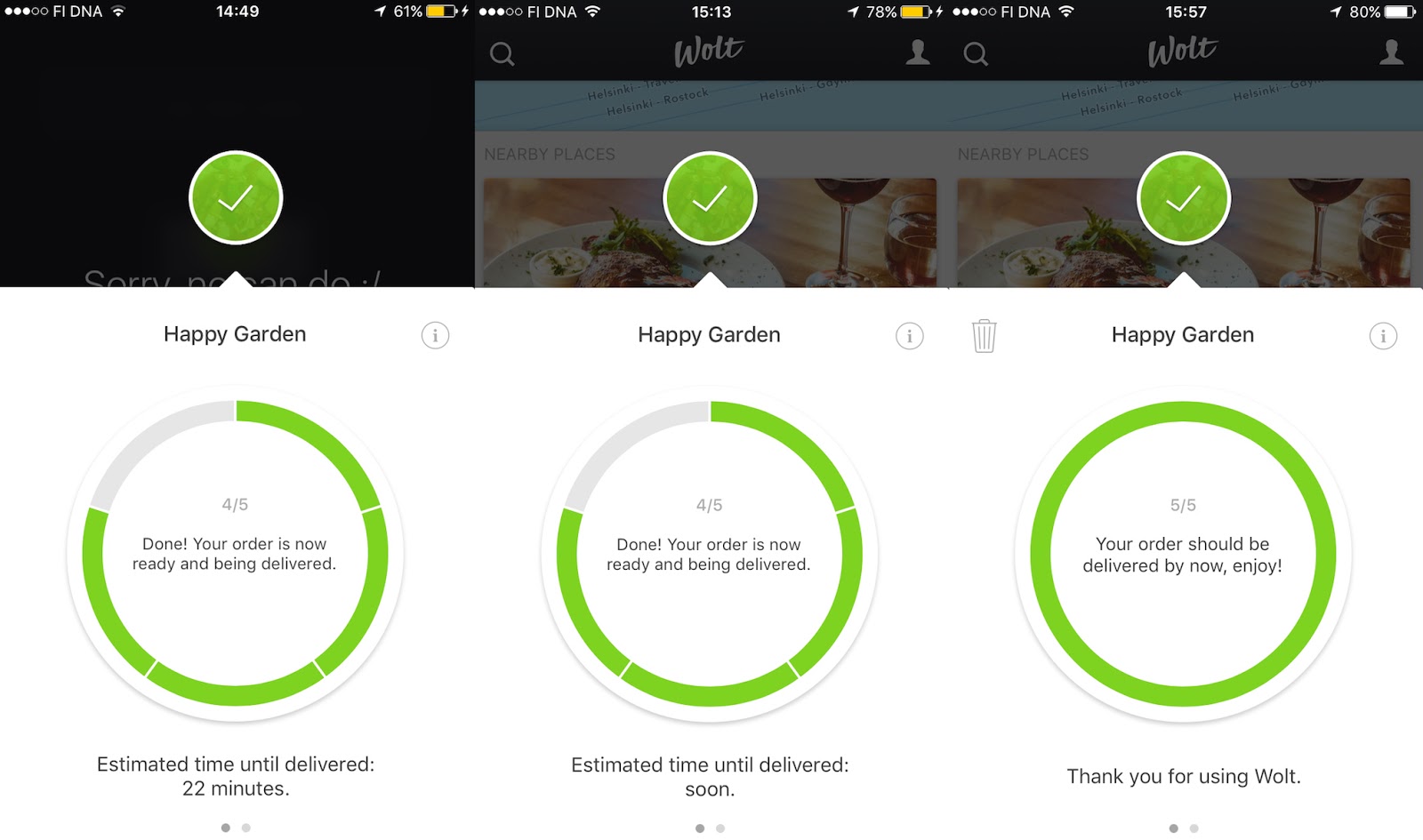 | Wolt osaa. Onhan tällainen aika-arvionäkymä kivemmannäköinen kuin Foodoran karvalakkimallissa. |
