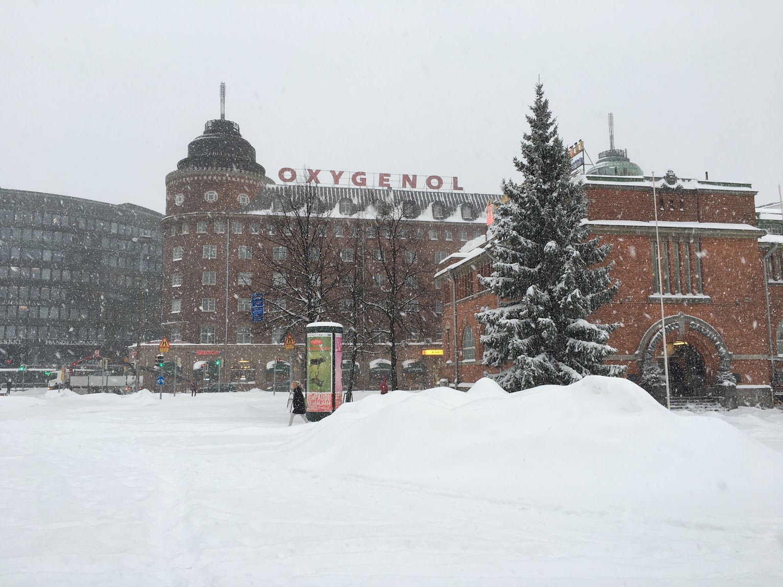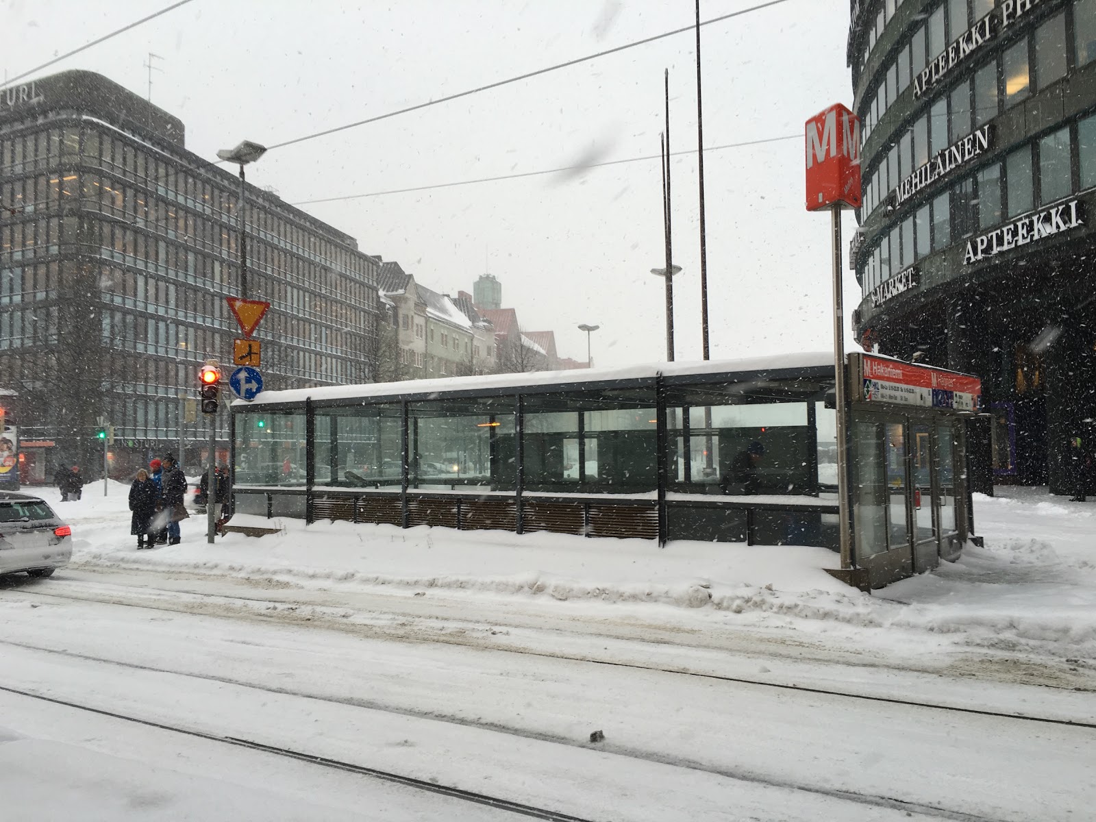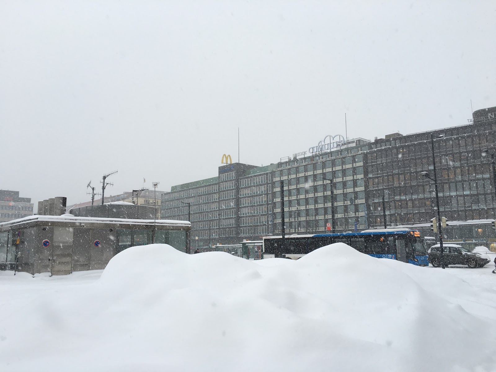 | Hakaniemen tori oli täysin lumen peitossa. Jänniä tää lumimyräkkäpäivät! Olispa näitä enemmän, kuin tuota ikuista loskakeliä! :D |