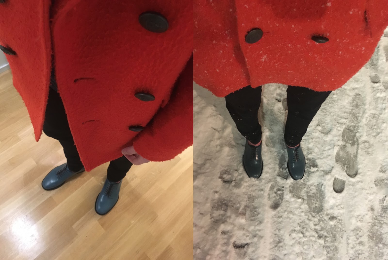 | Oli vaihteeksi hyvin osuva kenkävalinta lumimyräkkäpäivänä... en yleensä katso ulos ikkunasta, ehkäpä pitäisi, kun nää kenkävalinnat tuppaavat olemaan tällaisia... :DD: |